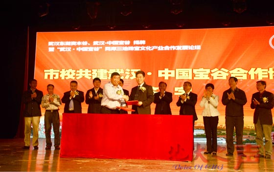 倪子林、我校副校长王华代表双方签订联合共建“武汉·中国宝谷”合作协议。