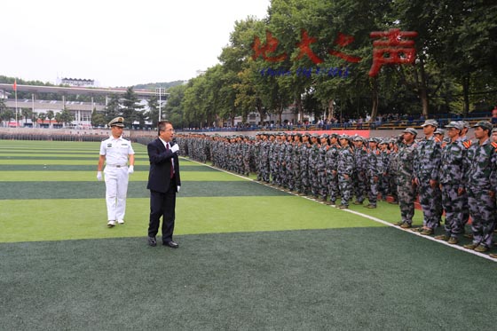 校长王焰新对40个方队进行检阅。2014级新生们用高涨的热情、响亮的口号迎接检阅,顺利完成了大学第一课。