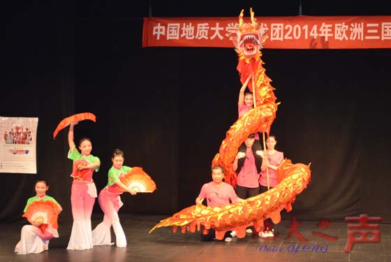 保加利亚大特尔诺沃大学是此次巡演的第一站。当地时间9月26日晚,巡演活动以载歌载舞的舞龙《开门红》在保加利亚大特市政厅开场。随后,12个节目轮番上演。民乐《葡萄熟了》表达了新疆少数民族收获的喜悦,傣族舞蹈《女儿国》展现了傣族姑娘的风情,豫剧《谁说女子不如男》将花木兰替父从军、英姿飒爽的形象生动地表达出来,《春到湘江》展示了南方水乡的美丽风景,功夫表演《武魂》和太极神韵完美地展现了中国武术的风貌;《月狐吟》通过对草原狐狸的表现,使人们领略到蒙古人民对生活的热爱;《赛马》演奏展现了一幅万马奔腾的画卷;湖北民间舞蹈《龙船调》把中国南方人民对爱情的追求诠释到了极致,保加利亚民歌《一朵美丽的保加利亚玫瑰花》和压轴曲目《友谊天长地久》将晚会推向高潮,引起全场共鸣和起立齐唱,场面感人。大特尔诺沃市副市长卡拉巴扎科夫、保加利亚大特尔诺沃大学校长普拉门.列格斯科图普等和300多名观众观看了演出。据悉,大特尔诺沃大学孔子学院是我校合作建设的三所孔子学院之一。