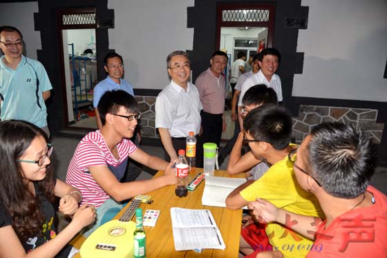 7月23日晚,校领导郝翔、王焰新、傅安洲、万清祥一行赴周口店看望实习师生。(张玉贤摄)