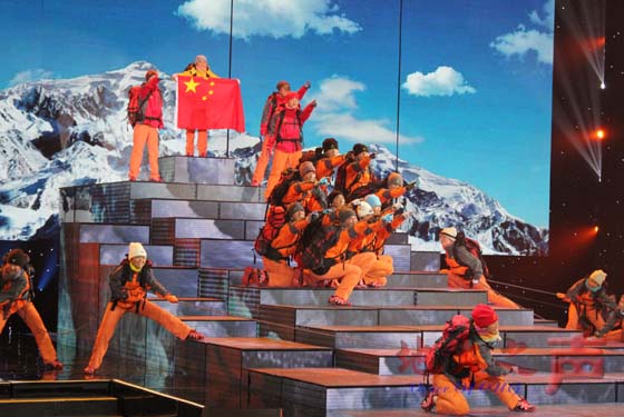 (通讯员翁华强 游萌 吕后郊 摄影唐少桥)5月4日晚,“五月的鲜花,我们的中国梦”——2014年全国大学生校园文艺会演在中央电视台一号演播大厅与全国观众见面,以我校研究生陈晨同学成功登顶珠峰故事为原型的原创音乐情景剧《攀登》登上舞台。
