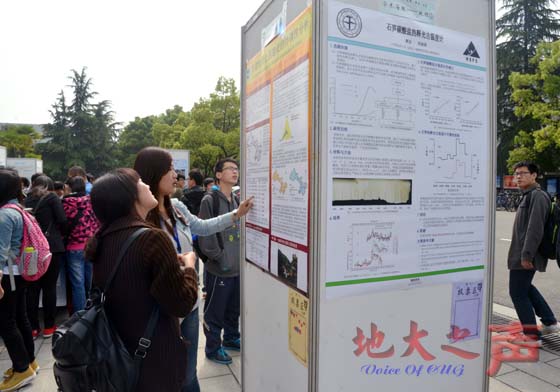 启动仪式以学术海报设计展、国际交流图片展和地质标本展等形式展开,吸引了不少感兴趣的同学驻足观看。学术海报展示是今年推出的新活动,用以激发学生科研兴趣、展示科研进展、促进学生进行各级交流,仅20天的时间收到了高年级本科生和研究生设计的43份作品。