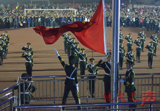 伴随着随风飘扬的五星红旗,嘹亮高亢的校歌,在这个特别的夜晚,我们共同祝愿地大更美好,地大的明天更辉煌。 (校团委、学生会、记者团)