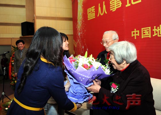 於崇文院士及夫人、中科院院士殷鸿福、金振民,湖北省教育厅副厅长欧阳建平、校党委书记郝翔、校长王焰新、及於崇文院士的同事、弟子和学生等参加了庆典。