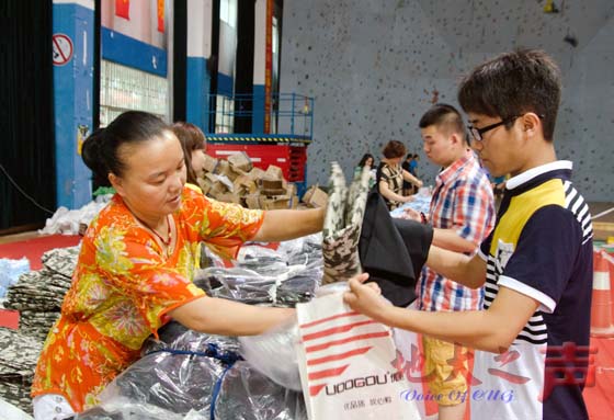 三、各学院(课部)、各部门为新生们提供一站式服务,图为新生学籍注册、领取军训用品。