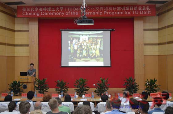 王华讲话。他指出,学校对荷兰代尔夫特理工大学来校访学项目十分重视,专门成立了领导小组,校办、国际合作处、工程学院等部门具体负责此次访学活动的联系、组织和接待。他逐一分析了代尔夫特理工大学与我校的学科特色,回顾了代尔夫特理工大学学生在四周访学期间的交流与科研实训内容,指出此次访学项目对访学团学生加深专业认识,培养创新意识和实践能力,培养科学精神和科学态度的重要意义。他向访学团学生表示祝贺,希望他们有机会再来我校,为中荷两国的友谊和平、交流和发展做出积极贡献。