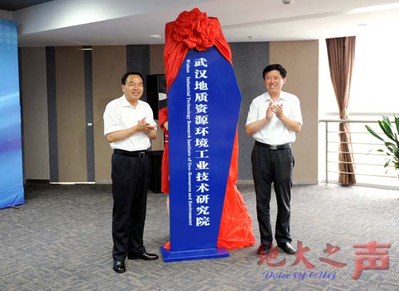 唐良智、郝翔共同为武汉地质资源环境工业技术研究院揭牌。