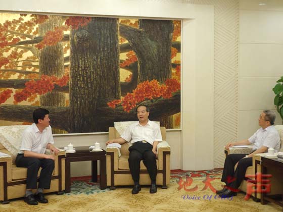 (通讯员刘彦博 陈华荣)6月30下午,校党委书记郝翔、校长王焰新在广东迎宾馆拜会我校校友、广东省副省长林少春并座谈。广东省地质局局长欧阳志鸿,我校相关单位负责人等参加了座谈。