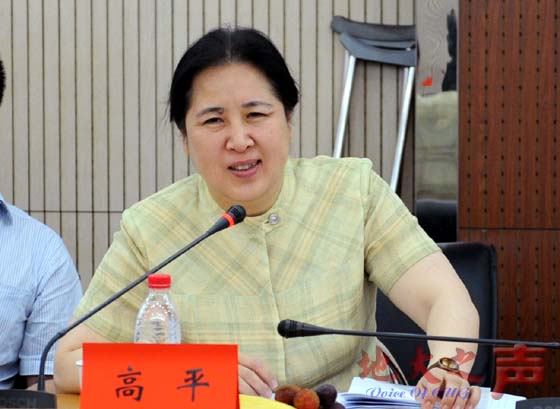 国土资源部科技与国际合作司副司长高平一行6人,我校中科院院士赵鹏大、校长王焰新、副校长郝芳及相关职能部门负责人参加了此次评估会议。