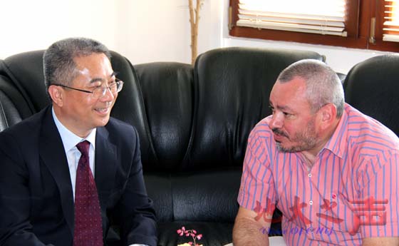 5月15日,中国驻保加利亚特命全权大使郭业洲在大使官邸接见了王焰新,双方就我校与保加利亚高校开展教育合作、孔子学院建设发展事宜进行了会谈。王焰新介绍了我校国际合作交流情况和保加利亚大特尔诺沃大学孔子学院战略发展规划。郭业洲表示将全力支持大特尔诺沃大学孔子学院的建设和发展。