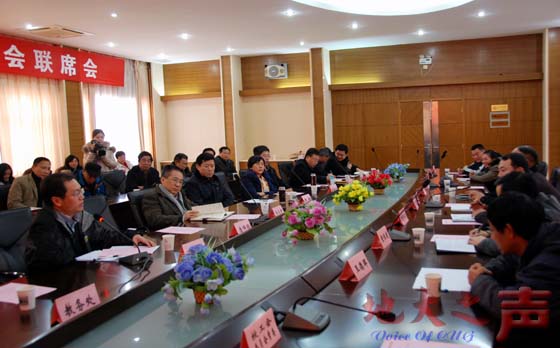 12月19日上午,我校在惠宾楼四层会议室举行2012年校行政与校工会联席会议。会议听取了相关部门对2011年度校行政与校工会联席会议决议落实情况的汇报,通报了“紧缺战略矿产资源协同创新中心”、 “地球科学国际大学联盟”以及青年教师住房等相关情况。校领导郝翔、王焰新、朱勤文、王华、万清祥,相关职能部门负责人以及校工会委员会委员和各分工会主席等参加会议。