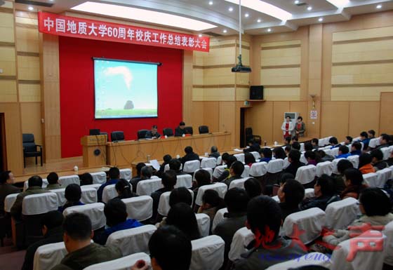 校长王焰新主持大会。他指出,校庆期间,学校按照“甲子积淀、世纪腾飞”的主题,按照学术校庆、文化校庆、民生校庆、感恩校庆的总体部署,举办了大型文艺晚会、系列国际和国内重要学术会议、各种展览展示活动。这些精心筹备、精彩纷呈的活动,展示了地大师生良好的精神风貌,为学校凝聚力量,争取各方面支持,实现在“十二五”时期的跨越式发展进一步夯实了基础。