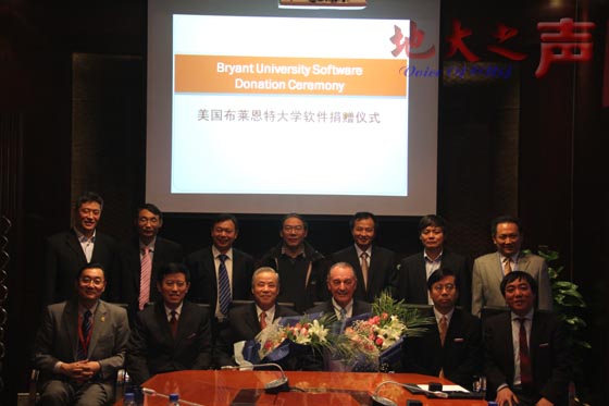 11月6日上午,美国布莱恩特大学向我校捐赠软件。美国布莱恩特大学校长梅恪礼、副校长杨洪,我校党委书记郝翔,教育基金会理事长张锦高,副校长唐辉明、赖旭龙,相关学院、职能部门负责人参加了捐赠仪式。