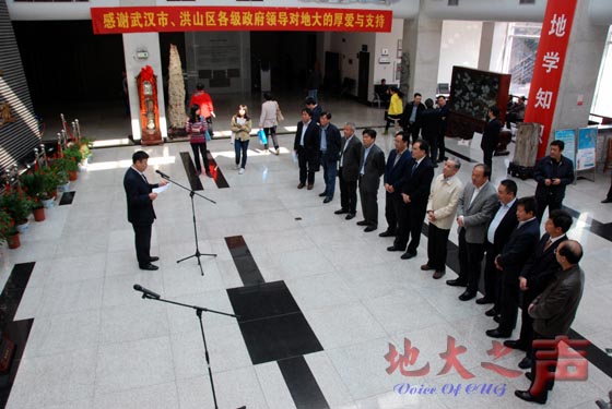 王焰新讲话。他代表学校感谢武汉市、洪山区各级政府对我校的厚爱和支持,并表示我校将以崭新的面貌迎接校庆60周年庆典,再创辉煌。
