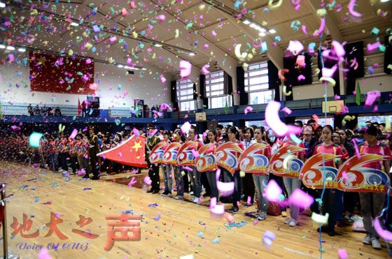来自46所大学的代表队入场后,随着国歌声响起,开幕式正式开始。