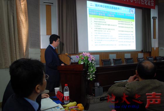 校长王焰新致辞。他介绍了学校概况,尤其是地理信息系统学科建设情况。他说,学校一直非常重视推动与数字地球有关的科学研究、人才培养和社会服务,一直把建设“国家地理信息系统工程技术研究中心”作为我校科技平台建设的重点之一,在政策上优先扶持、在队伍建设和实验室建设上优先投入。自2002年起,我校就一直积极筹备申报“国家地理信息系统工程技术研究中心”,为该中心的建设提供了全方位支持。若能获准组建,我校将进一步开拓思路,创新机制,加大支持,努力实现“四个一流”的建设目标,即一流的工程化和产业化水平、一流的工程技术人才、一流的工程实验条件、一流的管理运行水平,为促进我国地理信息产业的跨越式发展再立新功。他希望各位专家对工程中心后期的建设和发展多提宝贵意见,促使学校进一步提升研究水平,努力为构建国家自主创新体系、加快发展战略性新兴产业、推动区域经济社会发展,做出应有贡献。
