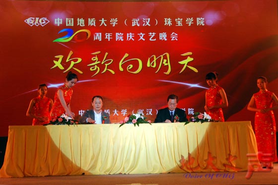 王焰新致辞。他说,20年来,珠宝学院勇敢肩负起为我国珠宝产业发展培养人才、制定行业标准、研发行业技术及装备的历史重任,团结奋斗,矢志创新,培养了一大批专业技术人才,发展了一批珠宝玉石鉴定、测试、加工技术和装备,创建了我国第一个宝石学博士学位授权点、宝石工艺材料学专业和珠宝首饰设计专业,引领了我国珠宝产业技术发展与进步的潮流,赢得了“珠宝教育的摇篮”的美誉,为我国珠宝产业的发展做出了积极贡献,也为学校、为武汉、为湖北赢得了声誉。珠宝学院20年的办学成就无可雄辩地证明:国际化战略是提高办学水平的重要途径,开放办学不仅可以引领学校创新运行机制、提高国际化水平,而且可以持续为学校提高人才培养质量、提升科技创新能力和社会服务能力提供强有力的支撑;学科专业建设是增强办学实力的根本,只有站在学科专业发展的历史高度统筹做好师资队伍建设、人才培养和科技创新,才能在服务社会经济发展的历史潮流中不断强化自己的优势、特色和综合实力;服务行业是推动大学发展的重要途径,始终走在行业和市场前面,凝聚各方面力量共同服务行业乃至整个经济社会的发展与进步,才能使自己的事业不断焕发新的生机和活力。他表示,学校将一如既往地支持珠宝学院的发展,继续把珠宝学科专业作为学校重点发展的学科专业,不断加大支持力度。他希望,珠宝学院继续发扬“艰苦朴素 求真务实”的校训精神,与时俱进,开拓进取,进一步重视和加强师资队伍建设和学科专业建设,不断提升国际化水平,提高人才培养质量、科技创新能力和社会服务能力,为尽早把珠宝学院办成国际一流的学院,为学校实现跨越式发展做出更多、更大的贡献。