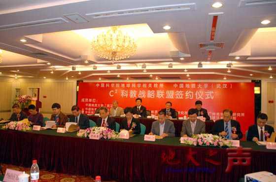为贯彻落实胡锦涛总书记2011年在清华大学百年校庆上重要讲话精神,进一步推动高校与科研院所进行产学研合作,大力提升地球科学领域协同创新能力和拔尖创新人才培养水平,在教育部、国土资源部共同指导下,我校和中国科学院共同携手,于4月12日在北京签约成立了“C2科教战略联盟”。