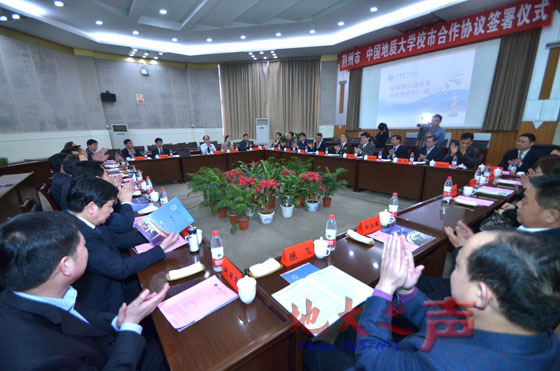 校长王焰新介绍了双方合作的主要内容。据介绍,双方将按照“资源共享、优势互补、互惠互利、协同发展”的原则,在资源开发、人才培养和交流、技术研发等领域开展全面、深入的政产学研用合作。一是共同开发好、利用好荆州的各类矿产资源。充分发挥学校在资源勘查开发领域的学科、人才优势和荆州市丰富的资源优势,协助荆州市人民政府做好资源勘查工作,制定资源综合开发利用的整体方案和实施规划,并根据荆州市的发展需要,为荆州卤水资源开发、旅游资源规划与开发、洪湖湿地保护、四湖流域水环境治理和水资源开发等提供技术和人才支持。二是采取双向挂职的方式加强人才交流。学校选派具有发展潜力且作为重点培养的青年教师和管理人员到荆州挂职锻炼,由荆州市安排挂任政府部门副职,并挂任企业副总。同时,学校将根据荆州市的人才需求状况,为荆州提供订单式人才培养,并为荆州在职工作人员提供各类长短期培训;荆州将为学校学生提供优质的实习、见习、实践条件,支持毕业生到荆州就业。三是按照利益共享的方式共同开展科研攻关。学校将为荆州市提供有关技术咨询、对关键问题开展研究,并根据研发需要由双方共同建立不同层次的技术开发中心、工程研究中心;荆州市将支持我校教师、科研人员到地方领衔创办企业或以科技成果入股形式进入企业,共同深化科技体制改革,提高科技成果转化水平和产业化水平,使我校为服务荆州产业升级、促进荆州地方经济发展做出更大贡献。双方还将成立校市合作领导小组,由双方主要领导及相关部门负责人担任小组成员,负责领导、组织、协调和解决合作中的各种问题。